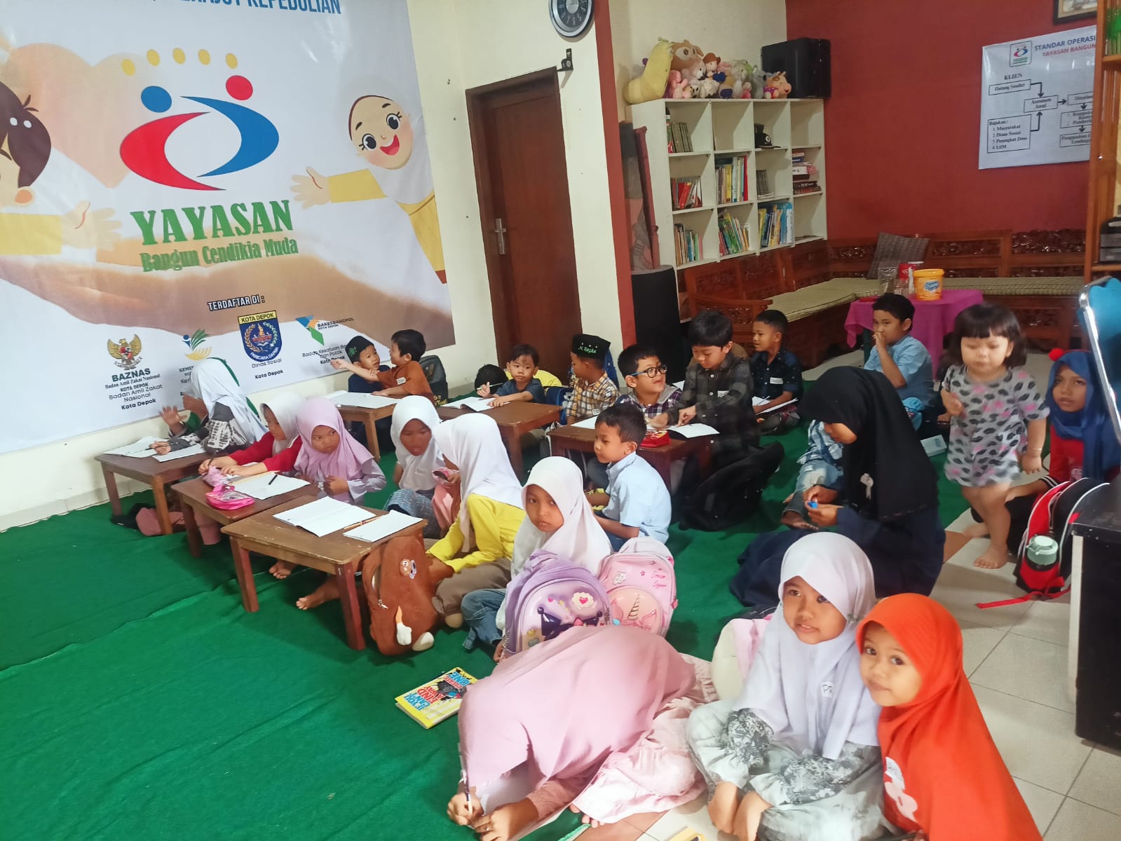 Depok, Yayasan YBCM menyelenggarakan program les baca tulis gratis bagi anak-anak kurang mampu sebagai bentuk kepedulian terhadap peningkatan literasi dasar usia dini. Program ini diikuti oleh anak-anak dari keluarga prasejahtera, di mana sebagian peserta didik merupakan anak yatim.